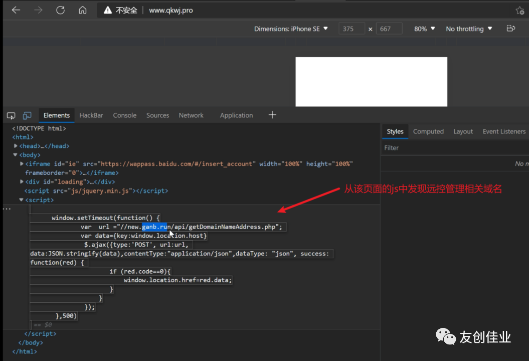 1、直接访问诈骗短信中的网址,从前端js代码中获得总控后台的地址:![]()