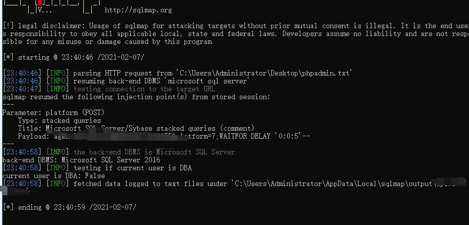 mssql数据库,不是dba权限,不是sa。直接扔掉因为不能getshell。脱库我对这种没兴趣没有脱库什么的因为没意义。