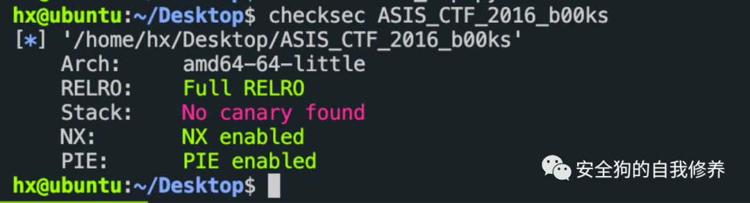 •NX:全称(NO-execute)不可执行的意思,NX的基本原理是将数据所在内存页标识为不可执行,当程序溢出成功转入shellcode时,程序会尝试在数据页面上执行指令,此时CPU就会抛出异常。