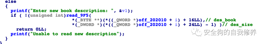 溢出写\入x00,book1指针地址被抬高并指向了description