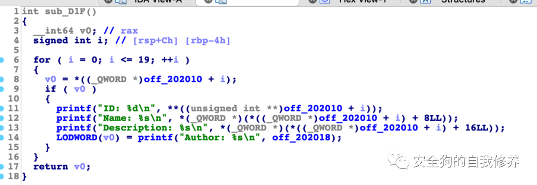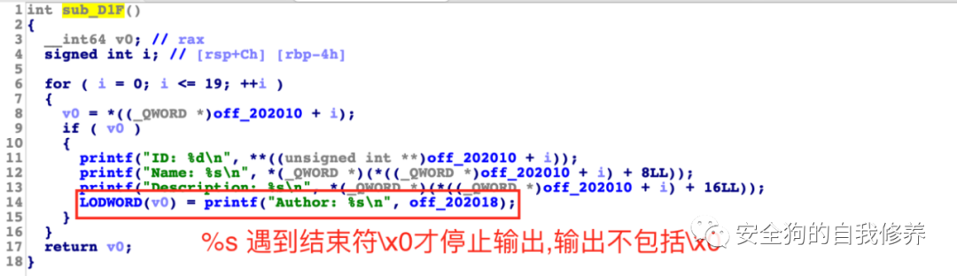 此时book1指针覆盖了author name的结尾字符 \x00. book1指针与author name连接在了一起。 使用sub_D1F()函数打印出book1指针。