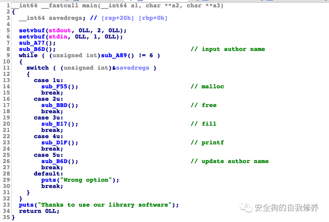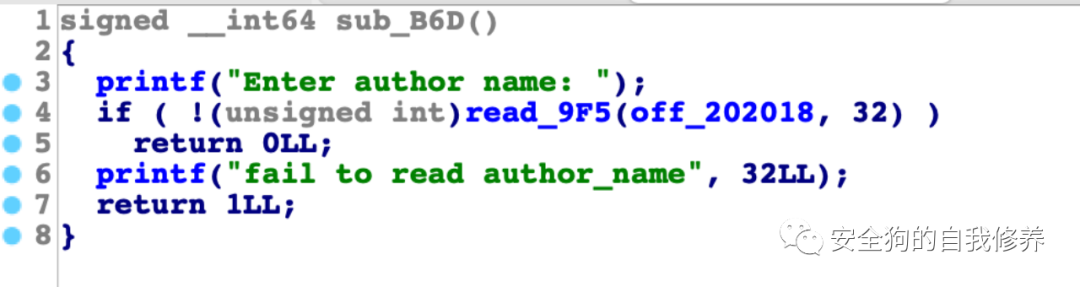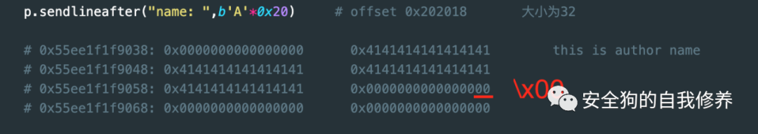 首先输入32个长度字节author name。 author name 存放在data段中 最长为32,偏移地址为0x202018