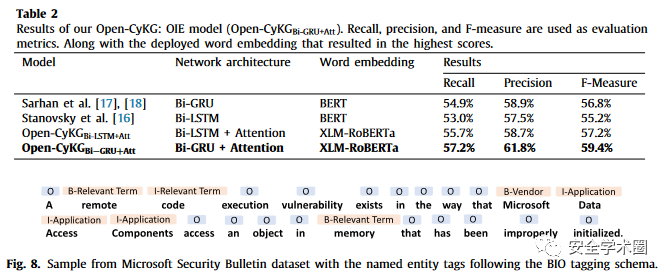 作者采用了两种不同的数据集,分别包括不同的标签。分别为Microsoft Security Bulletins和[1]所采用的数据集。前者包括微软的软件缺陷、漏洞、补丁和减灾信息,后者包括不同的CTI报告。