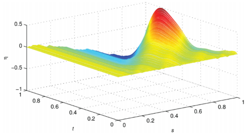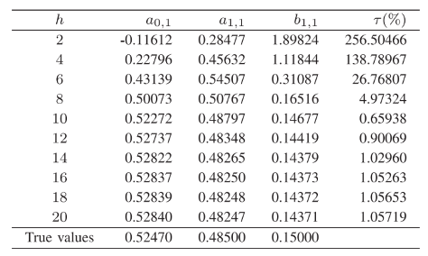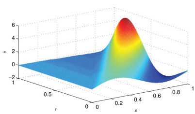 从上表可以看出EM-AM算法提供的估计误差随着h的增加而变小并接近零。本文在仿真时使用 h = 20 时的估计参数对二维系统进行建模。下图显示了二维因果系统的估计响应: