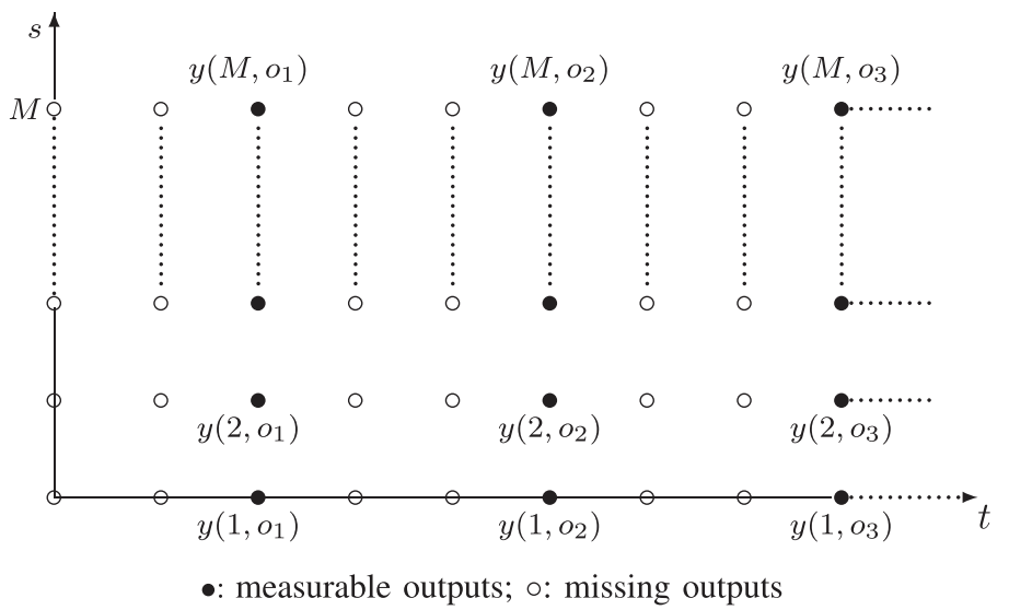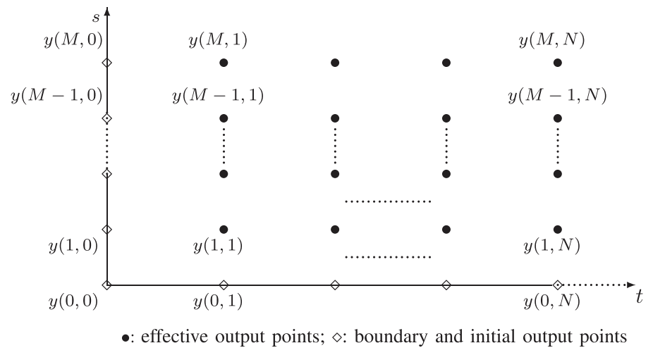 EM算法是一种有效的识别算法,可以识别具有不完整数据的一维系统。然而,与一维系统不同,二维因果系统在每个采样瞬间都会有更多的数据丢失,这使得二维因果系统识别更具挑战性。下图显示,2-D系统在每个采样瞬间丢失M个数据点,而在1-D系统中,每个采样瞬间仅丢失一个数据点。本文提出的EM-AM算法可以扩展到二维因果系统。