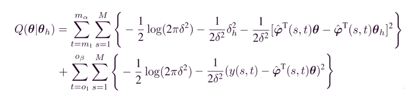 本文使用EM算法处理具有缺失输出数据,分为求期望(E步)和最大化Q函数(M步)两步,E步即对数似然函数求期望: