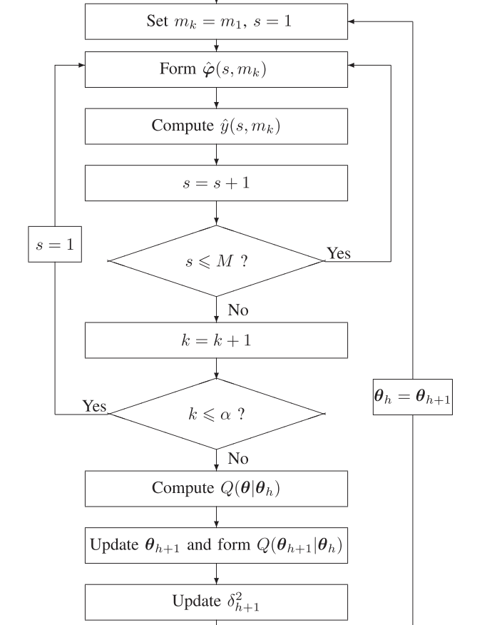 从EM-AM算法的流程图中可以看出,应该在每个采样时刻mk估计M个缺失输出。而对于一维系统,只需要在每个采样时间mk估计1个缺失输出即可。
