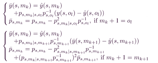 由于我们使用的期望值和缺失的输出数据有误差,这里的估计误差用新息表示,计算公式为: