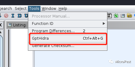 ChatGPT for Ghidra的插件来源于:https://github.com/evyatar9/GptHidra。官方给出的解释是:GptHidra is a Ghidra plugin that uses the OpenAI Chat GPT to explain functions. 我们的目标是在Ghidra引入OpenAI来识别函数。