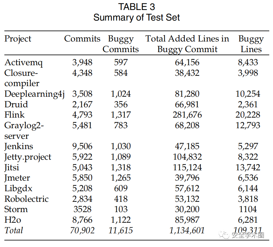 识别测试数据集中的bug代码行。对于每一个bug-introducing commit,如果其处于splitting commit之后,则将其添加到测试数据集中。这里需要识别测试数据集中的bug行以作为ground truth。为保证正确识别测试数据集中的bug行,在Yan等人的工作之后,作者进一步使用了5个月的窗口以尽可能覆盖bug-fix和bug-introducting commit。选择5个月作为窗口的原因是:80%的错误提交平均在5个月内被修复[1]。接着确定由bug-introducing commit所引入的测试数据集中的bug行。