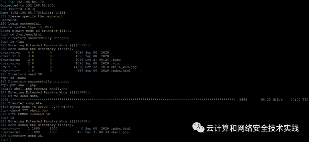 ftp登录进去,发现可文件上传的目录,/var/www/html/.nano,