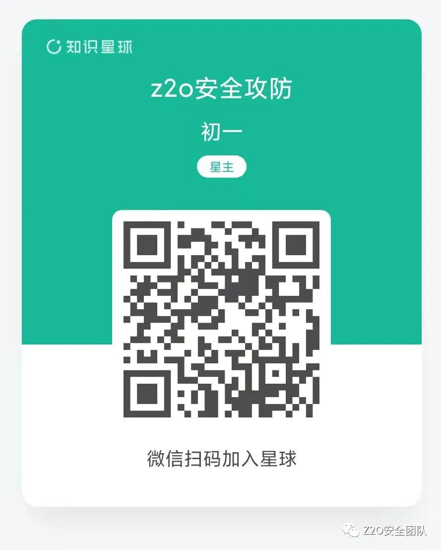 关注公众号回复“加群”,添加Z2OBot 小K自动拉你加入Z2O安全攻防交流群分享更多好东西。