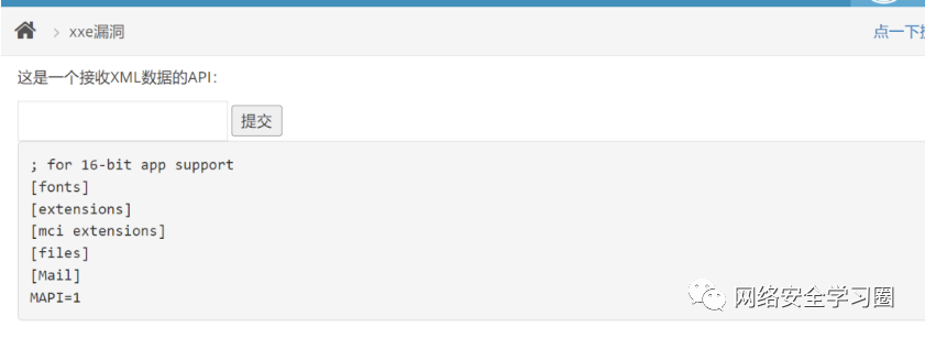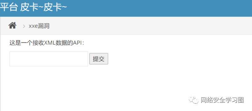 这里的漏洞环境我们使用的是pikachu这个靶场的XXE关卡,这个靶场应该都有吧,没有的也可以找我拿,打开该靶场的XXE关卡,如下