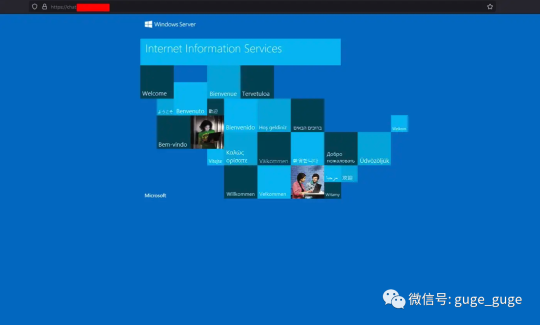 首先自然是一些基本的侦察与信息收集,使用一些开源工具(如AMASS等)进行子域枚举后,便开始查看每个子域,在这个过程中,偶然发现了一个域名:chat.example.com,页面为默认的IIS服务器登录页。