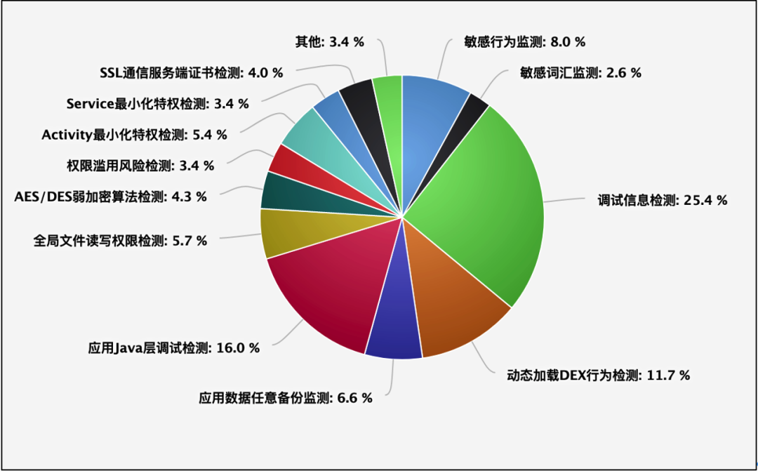 数据统计: 对辖区范围内APP风险检测数据进行汇总展示,对各漏洞数量占比进行图表展示,见图11。