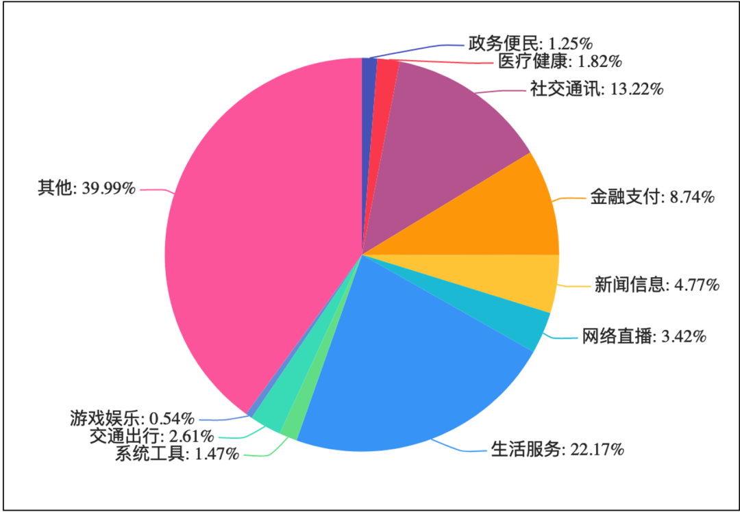 截止2022年12月底,通过潮启移动端安全管控平台共监测到山东省移动应用数量为11137款(不含历史版本),通过对移动应用行业分布数据追踪发现,目前山东省移动应用行业数量排名靠前的为生活服务类,约2448款,较11月份新增7款;社交通讯类约1460款,较11月份新增3款;金融支付类约965款,新闻信息类约526款。