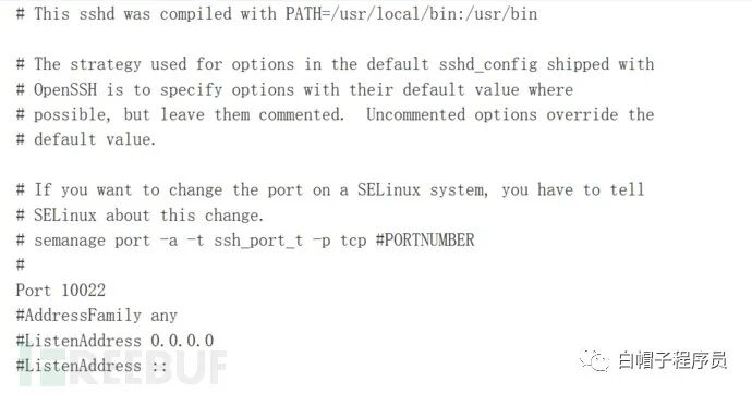 就在我准备作案工具的时候并且准备详细的计划时,突然想到,有没有可能是因为人家ssh开放的端口不在22上?查看端口果然没有看到22端口,于是去查看配置文件,原来老六管理员把端口开到10022端口了!