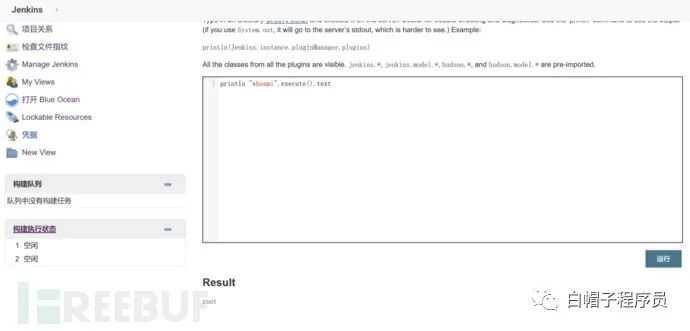 一开始对自己机器所在的200网段一顿猛扫,发现了不少平台和管理后台,但是都没有密码,于是每个平台都尝试使用弱口令撞运气,拿到了不少平台的弱口令进入了后台,但是都没有危害,直到发现6网段有台机器在8081端口开放了jenkins可以admin弱口令进入后台后,一顿翻发现存在一个可以执行命令的地方