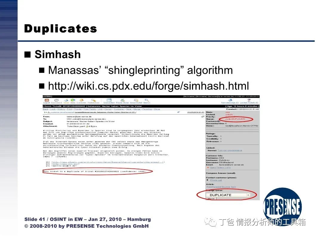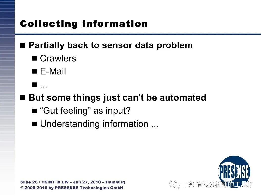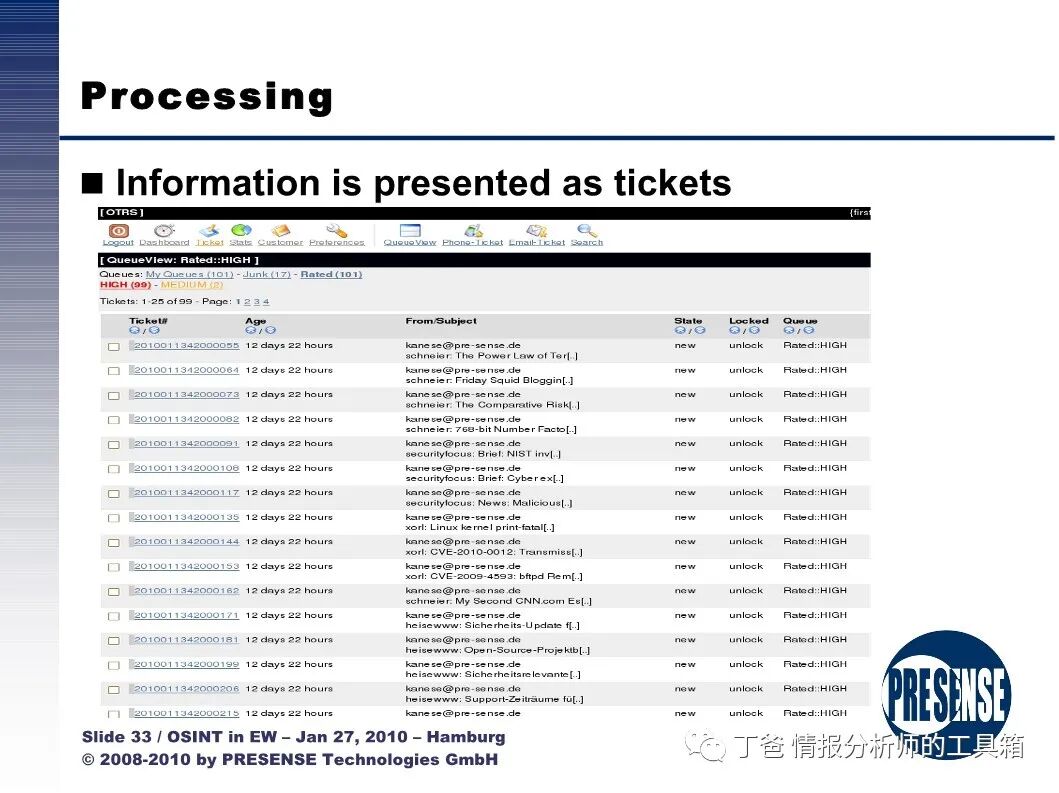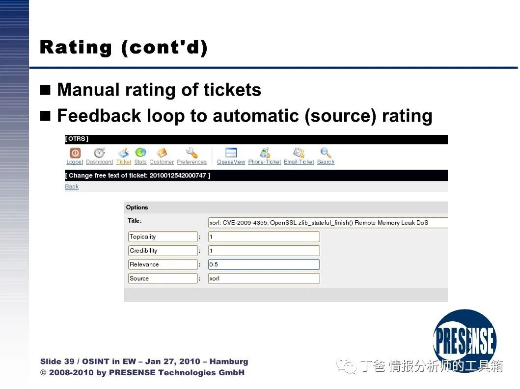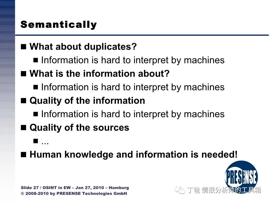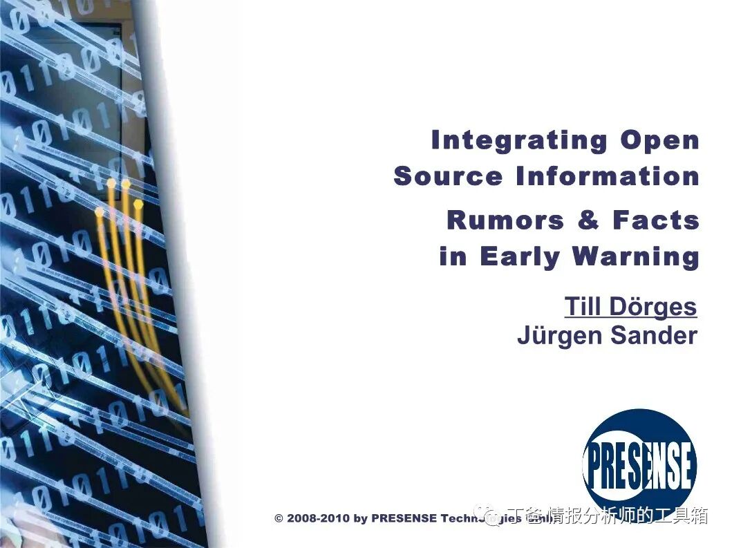 今天给大家推送的是德国软件公司PRESENSE Technologies GmbH的专家的PPT《在早期预警信息中整合开源信息中的谣言和事实》