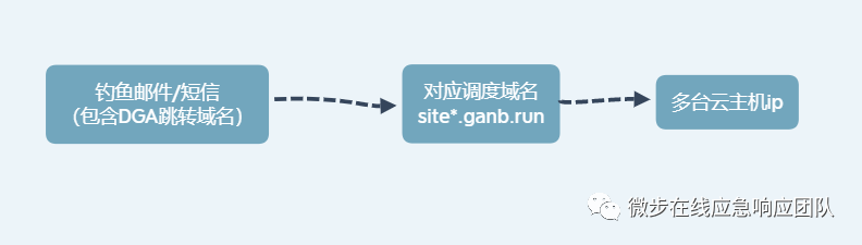 经过大量验证,所有的钓鱼网站域名全都cname指向了“ganb.run”的子域名,这些子域名一共有12个。结合dns cname选项的作用:用以记录域名的别名,方便解析这一特点,问题逐渐明了。