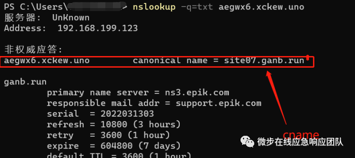 钓鱼网站的域名配置了cname解析,指向了“ganb.run”这个域名的子域名,此处必有猫腻!