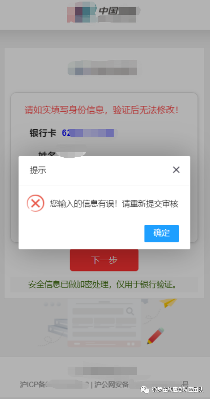 等到后面回顾梳理整个事件的时候才发现:原来他的后台可以人工自定义弹窗的内容,除了“信息有误外”还可以弹窗提示“银行卡密码错误”、“余额不足”等。妙!实在是妙!