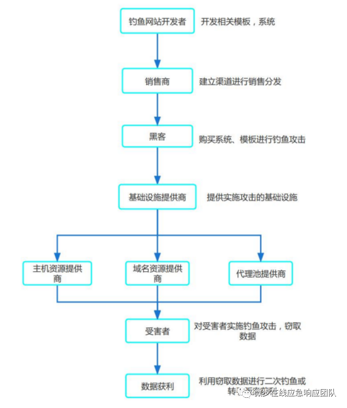 通过我们长期对钓鱼黑灰产产业链的分析和跟踪,发现目前该行业上下游产业链已相对完善,形成了开发、销售、使用、获利的一条龙式产业。