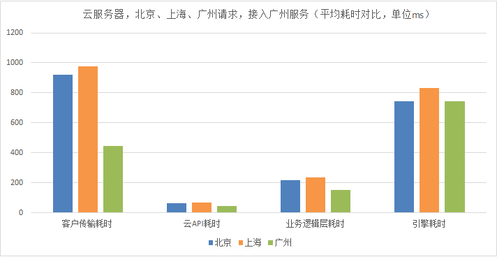 客户的传输耗时占比很大,主要是因为客户在北京发起请求,需要跨地域到广州的服务,存在很大的传输耗时,这部分需要我们通过优化部署来减低耗时。