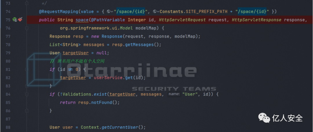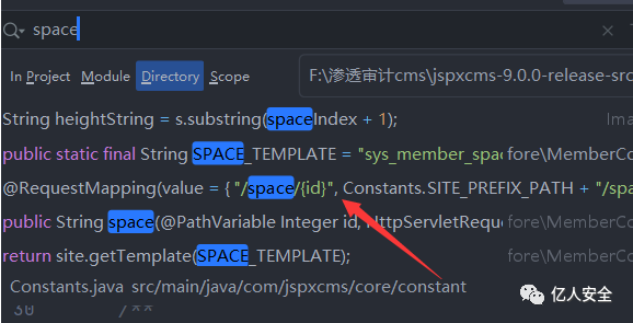 直接根据弹的情况来分析为什么回弹 先找到弹的页面的代码 因为路径有一个space 所以搜索space