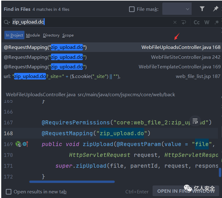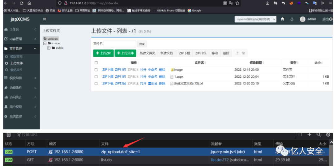 可以任意上传东西 但是直接jsp这些传上去访问直接下载 无法利用 但是在上传zip的时候会自动解压 这就有意思了 于是乎 先抓包抓到路由 然后全局搜索