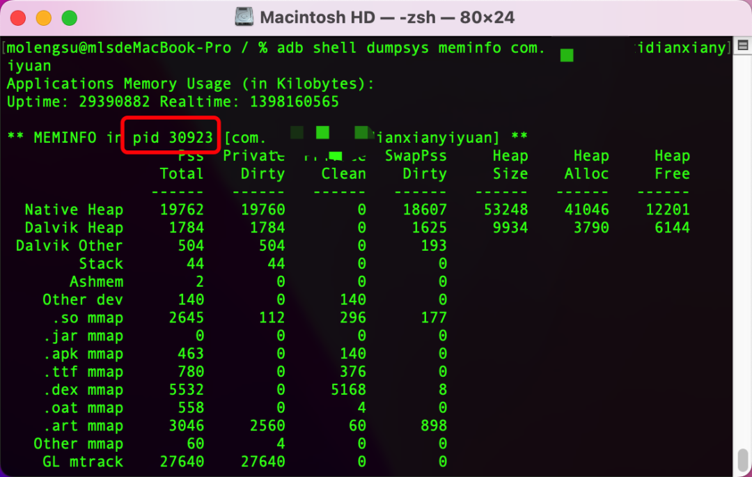 adb shell dumpsys meminfo com.xxxx.xxxx ##com.xxxx.xxxx是包名