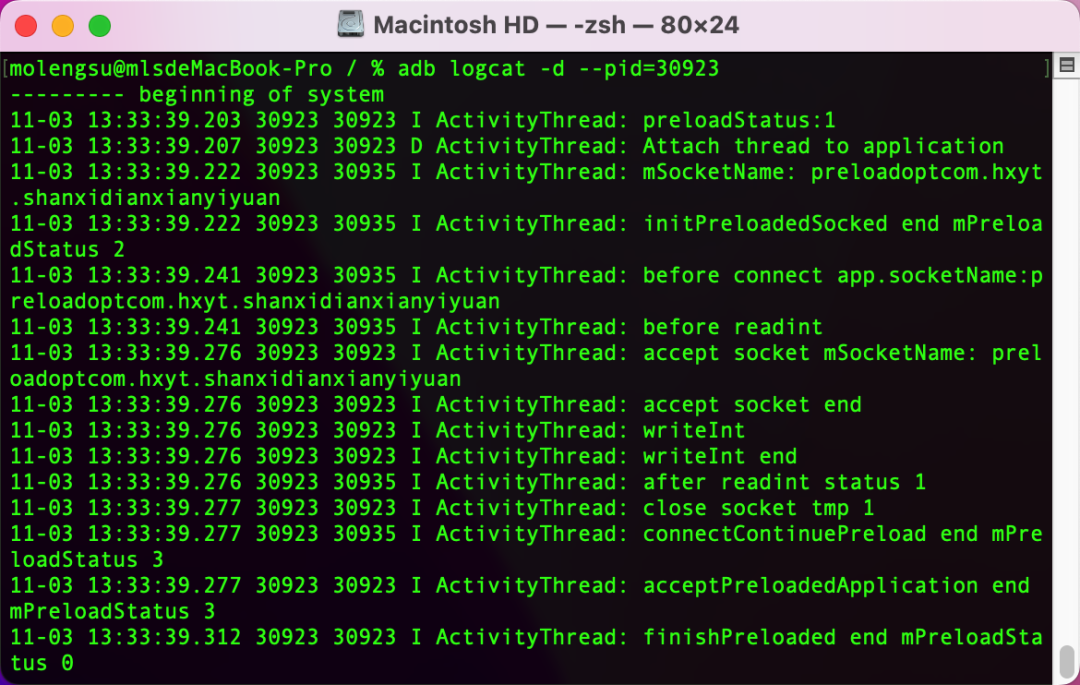 -v:设置日志消息的输出格式。默认格式为threadtime。