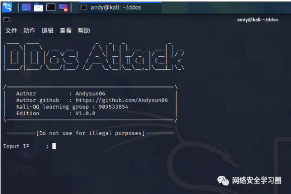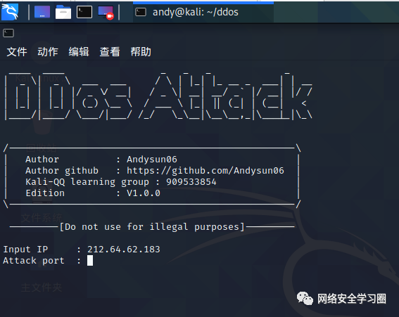 本文用于演示的 kali 是 2020 年版本,用 python 执行ddos-p2.py,输入命令: