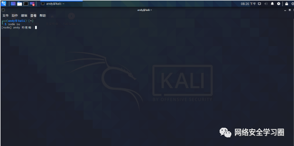 然后输入你的账号密码(注意:输入后不会回显出来,不用担心是否输入进去,在输完后按回车,如果输入成功就会获得 root 权限)