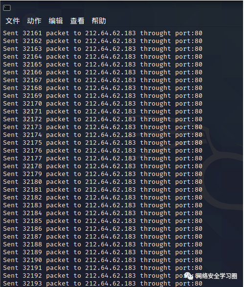 按下回车,如果出现以下界面,即代表已经开始向该 IP 发起 DDos 攻击,也就成功了。