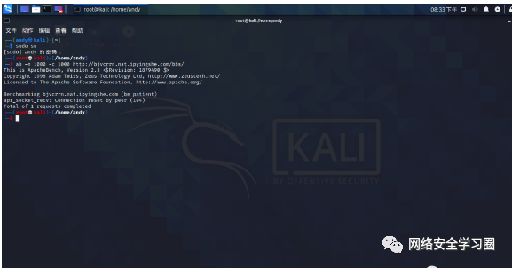 如果你想停止攻击,就按下Ctrl+Z,攻击就停止了。