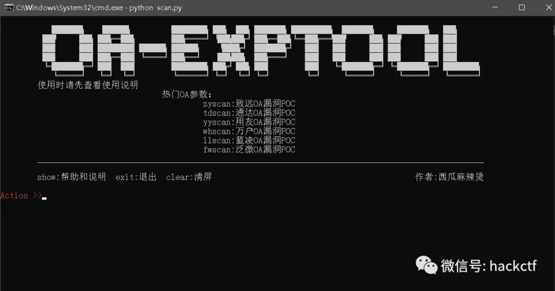 作者:西瓜麻辣烫项目地址:https://github.com/LittleBear4/OA-EXPTOOL用法第一次使用脚本请运行pip3 install -r requirements.txt然后