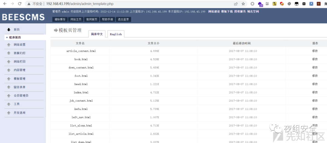 }发现模板修改界面的路径是接收file参数,如果存在的话就读取。来找一下这个功能点