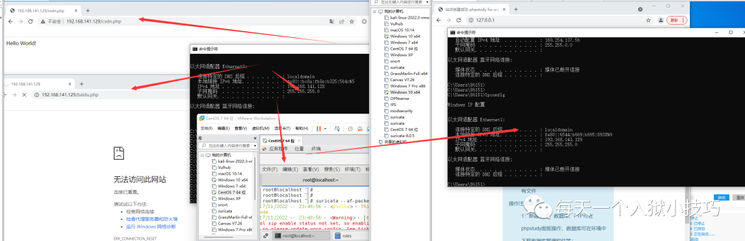 启动suricata之后,靶机ip会发生变化,变成 和攻击者同网段的,随后攻击者可以访问靶机