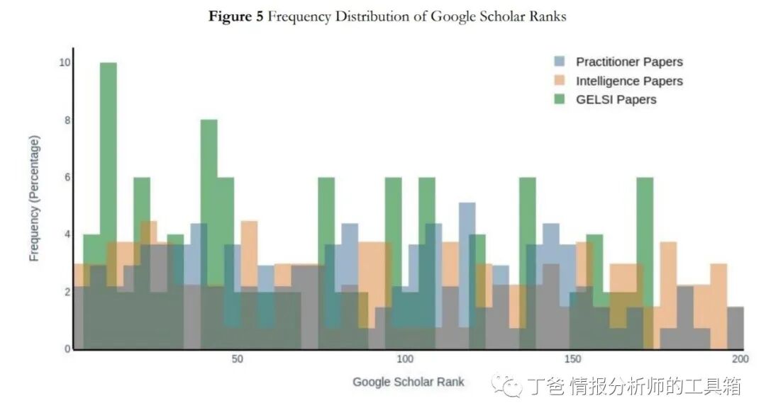 已经表明引用计数在Google Scholars排名算法中起主要作用。然而,正如上面的图表和计算所示,这不是计算每篇论文排名时考虑的唯一指标。事实上,其他变量,如论文的作者和日记,也会影响排名。开源情报语料库中涉及其伦理、法律和社会影响的一小部分更有可能被最著名的学术搜索引擎之一排名高于其余较大文献的事实证明了这一领域的相关性,尽管出版物数量很少。因此,深入研究OSINT-GELSI文献,并为研究人员如何进一步开发该文献提供指导至关重要。
