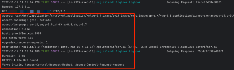 在服务器上查看对应的请求,可以看到相应的几个头信息都被去除。