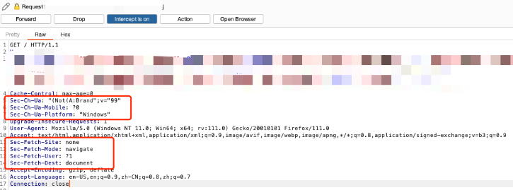 2、在Burp拦包时候发现浏览器总会有携带一些不必要的头信息(或许吧!),通过一些浏览器的插件可以去除这些头信息,但是实际的情况是总会有这些冒出来(可能是插件不给力或者我使用方式不对?)!
