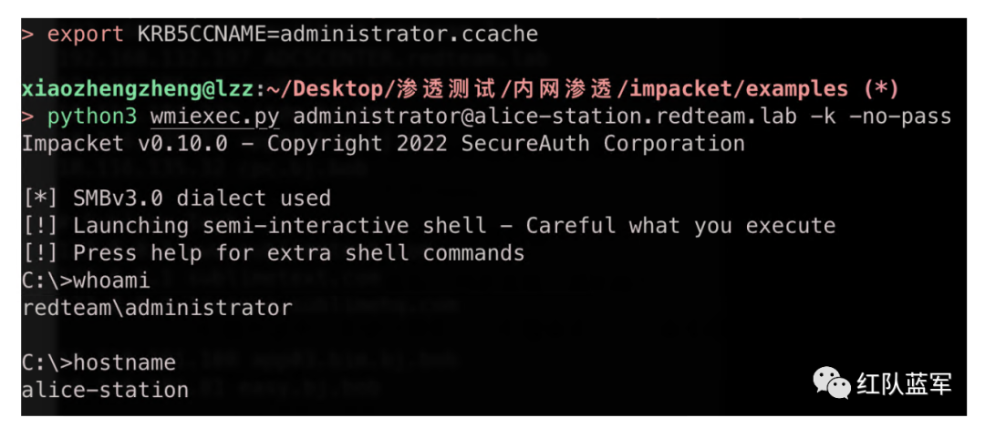 python3 smbexec.py -no-pass -k redteam/[email protected]