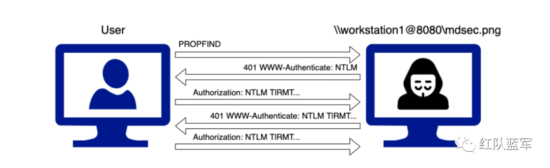 Web 分布式创作和版本控制 (WebDAV) 是超文本传输协议 (HTTP) 的扩展,它定义了如何使用 HTTP ( docs.microsoft.com )执行复 制、移动、删除和创建等基本文件功能 需要启用 WebClient 服务才能使基于 WebDAV 的程序和功能正常工作。事实证明,攻击者可以间接滥用 WebClient 服务来强制进行身份验证。这种技 术需要与其他强制技术(例如PetitPotam、PrinterBug)结合起来,作为这些技术的助推器。,从而提高NTLM 中继能力。当对启用 WebDAV 的 UNC 路径触发文件操作时,身份验证主机将执行以下操作: