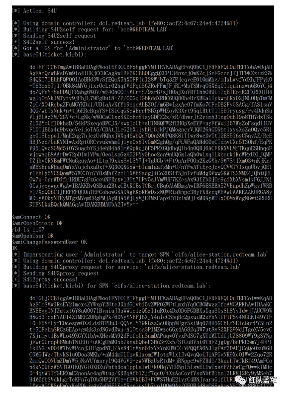 U2U实现了用户到用户的身份验证拓展,在S4U2Proxy阶段KDC会尝试使用bob的Long-term key(bob 的hash)进行解密,但U2U会使 用附加到TGS-REQ当中的TGT会话密钥加密之后的票据,KDC无法正常解密。这时可以利用SamrChangePasswordUser在S4U2Self 和S4U2Proxy中间将bob的hash更改成U2U对TGT加密密钥的值,KDC就能成功解密并颁发ST票据。具体可参考:https://mp.weixin.qq.com/s/1eJb-UtSVRV5JF0gfQgwWg
