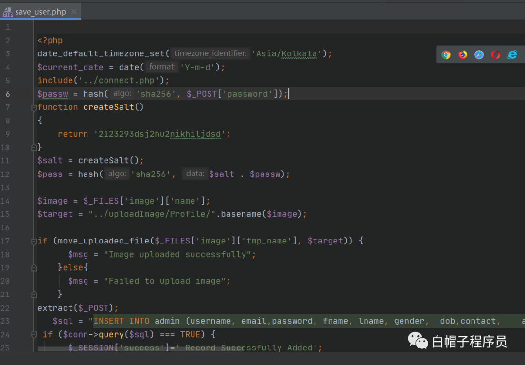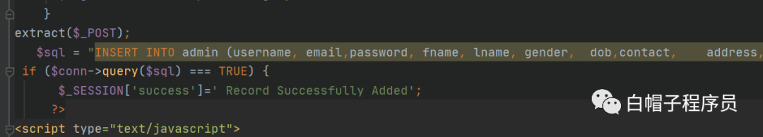 发现了数据库执行操作,现在我们已经大致知道了这个页面的作用,它是保存用户信息用的