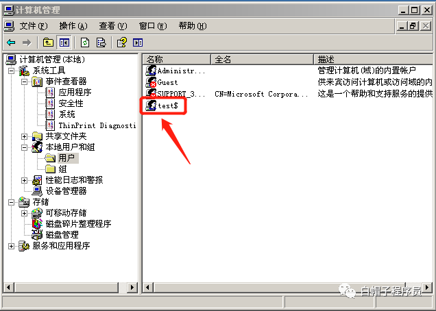 打开“计算机管理”,发现确实存多加了“test”账户,将其删除