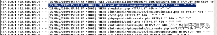 [27/May/2019:15:50:07入侵者开始扫描网站后台
